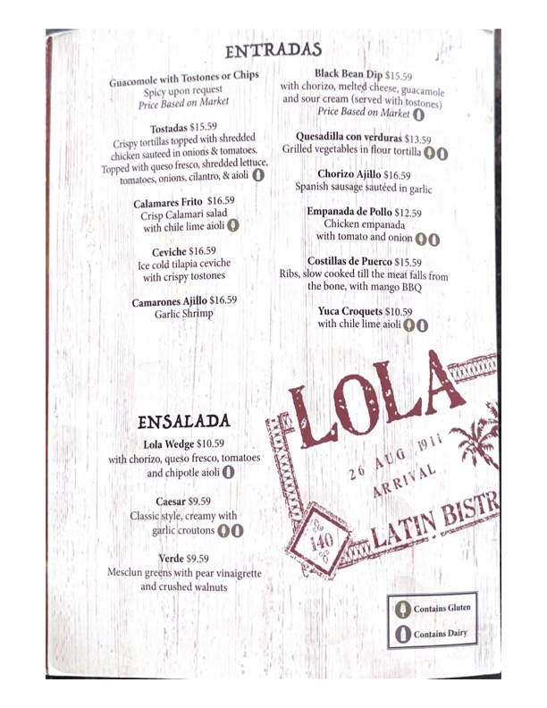 With a BYOB policy and a welcoming staff, including Jacob and Adriana, Lola Latin Bistro invites you to indulge in delicious cuisine while soaking in the lively ambiance. Join us for an unforgettable feast that captures the essence of Latin culinary treasure.